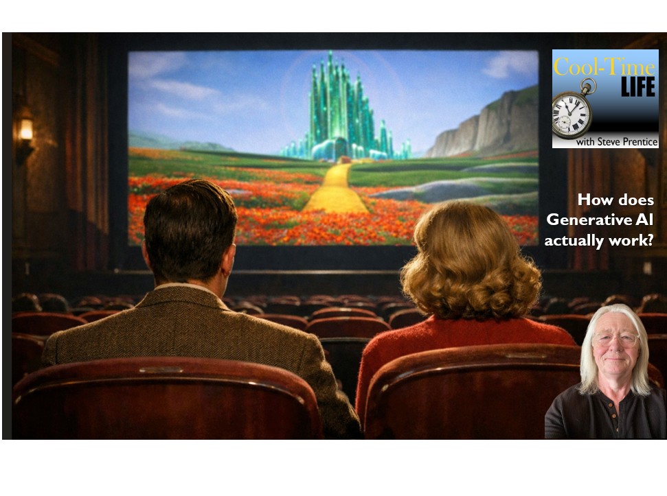 To get to a place where we can understand just how Generative AI works, I first want to take you to the movies. And I suggest we go revisit The Wizard of Oz from 1939. You might expect that I will use the metaphor of pulling back the curtain to reveal the real person behind the magic – spoiler alert – that is the key moment in that movie. Such a reference is completely appropriate and accurate, but it’s also too easy. We need to go deeper than that, so I will bring back the concept of movies and that movie in particular as we go through this story together. But here’s a hint: to add to my list of phrases I asked you to mentally complete at the start of this episode, here’s one more: “We’re off to see the _______.”